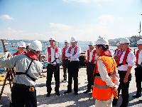 建設現場を視察し要望を伺いました。この大工事には最低でも25名の技術者が必要にもかかわらず、10名分の労働ビザしか発給されていないので大変困っているとのこと。原因を大使館に確認したところ、トルコの技術者労働組合が自分達の仕事を守るために、外国人技術者を入国させないように圧力をかけているとのことでした。明日のアンカラでのトルコ政府との会談で、この問題を取り上げることを約束しました。