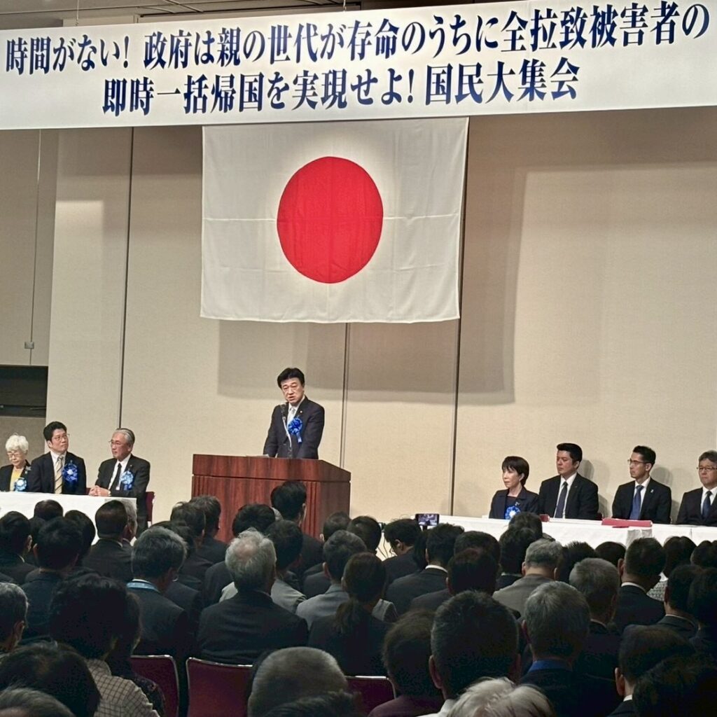 いつもは拉致議連メンバーとして参加していた国民集会に、今年は高市総理とともに政府を代表して「拉致問題担当大臣」の立場で出席しました。