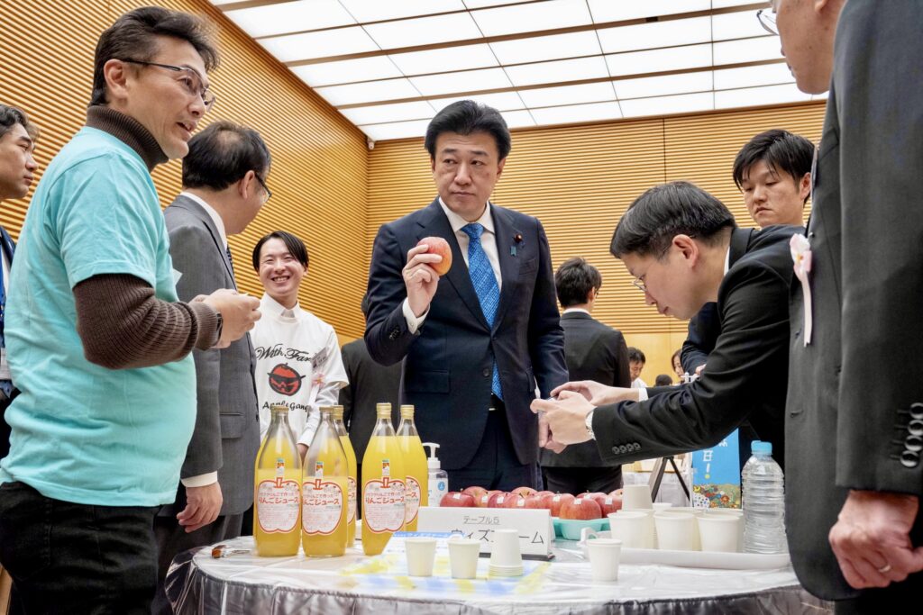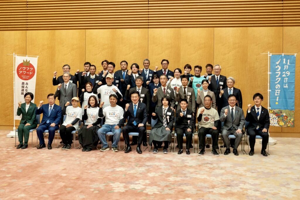 本日は、総理大臣官邸で「ノウフク・アワード」を受賞された5団体の皆様を総理大臣官邸にお迎えして、ノウフク交流会に出席しました。皆様が心を込めて作られた農作物や加工品を頂きながら、現場での工夫や思いを直接伺いました。