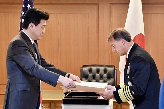 米国インド太平洋軍司令官のジョン・クリストファー・アクイリノ海軍大将を防衛省に招き、叙勲(旭日大綬章)伝達式を行いました。