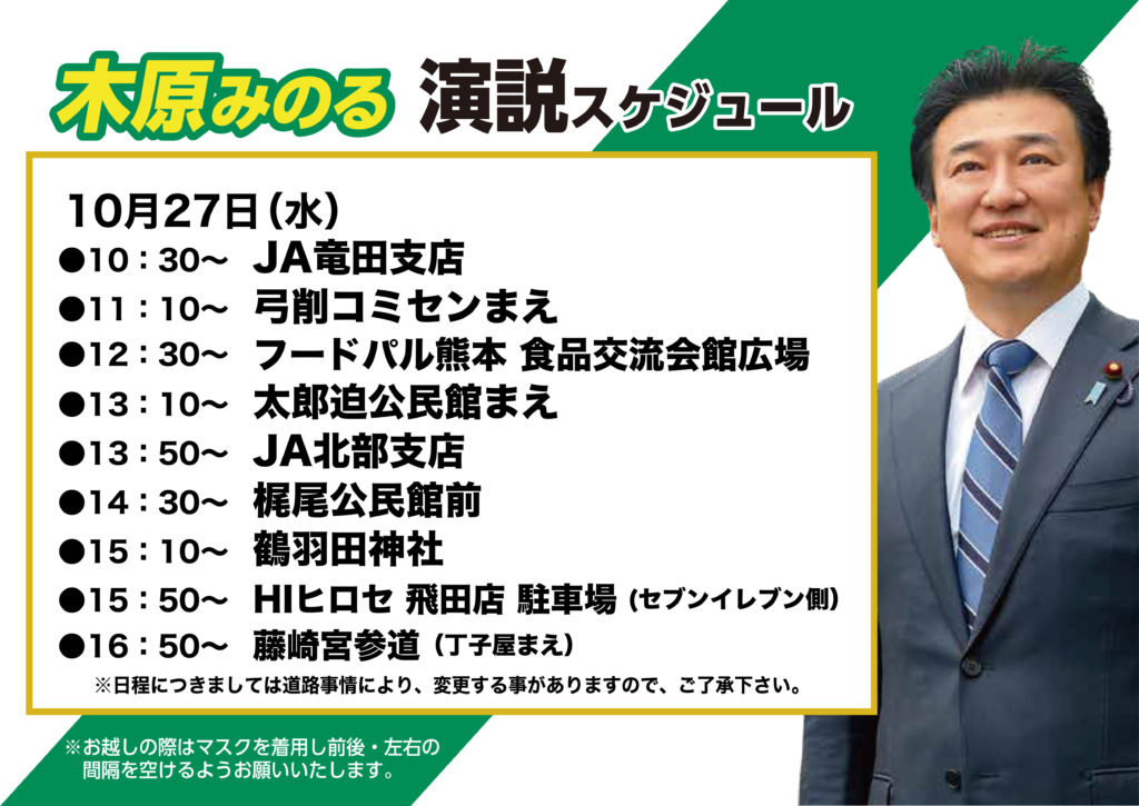 第49回衆議院議員選挙 第9日目 遊説日程