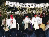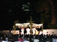 ●熊本城築城400周年記念「高千穂の夜神楽」が加藤神社の境内で行われました。お城をバックに幻想的な雰囲気の中での舞いに時間を忘れて酔いしれました。